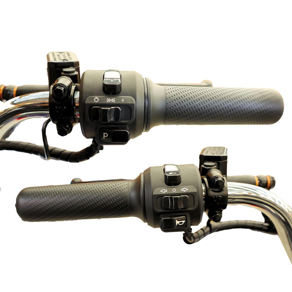 Conduce con confianza y estilo gracias a este modelo diseñado para brindarte seguridad y comodidad en cada trayecto. Su sistema de freno de disco delantero y tambor trasero garantiza una respuesta eficaz al frenar, mientras que la suspensión ofrece suavidad incluso en terrenos irregulares. Incorpora alarma antirrobo para tu tranquilidad, además de una pantalla LED que te mantiene informado en tiempo real. El faro de luz LED te permite manejar con total seguridad de noche, y con pedales y claxon incluidos, tendrás un control completo en todo momento.